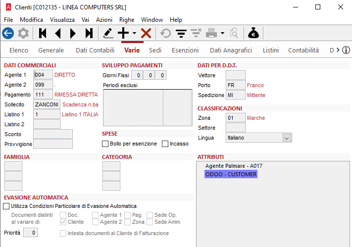 Andare sull’anagrafica Cliente nella scheda VARIE