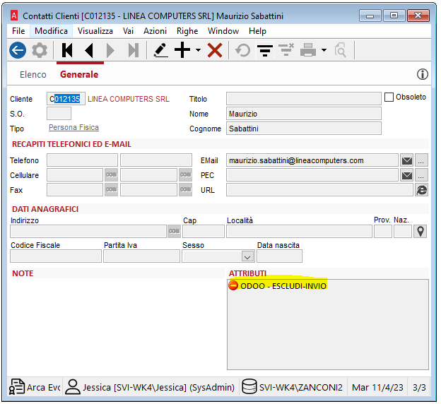 Questo contatto non passerà al database di ODOO.