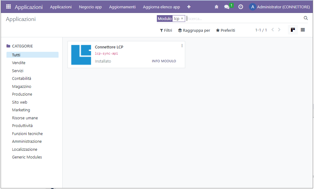Occorre installare l’applicativo CONNETTORE su Odoo per monitorare gli import di invio dati dal gestionale.