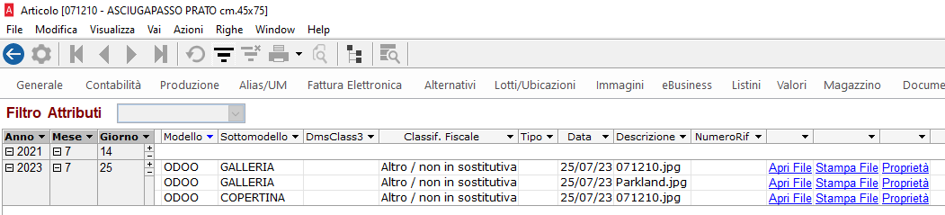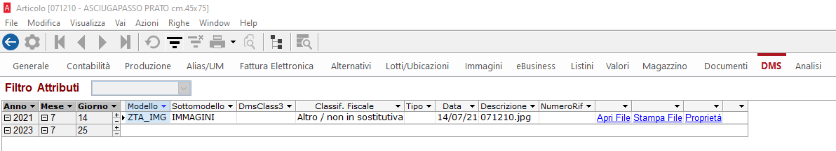 All’interno dell’anagrafica articolo, sulla sezione DMS, andremo ad inserire l’immagine.