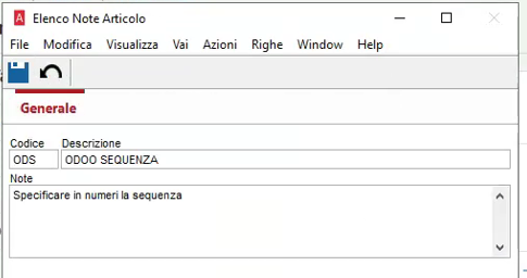 Codice: ODS Descrizione: ODOO SEQUENZA