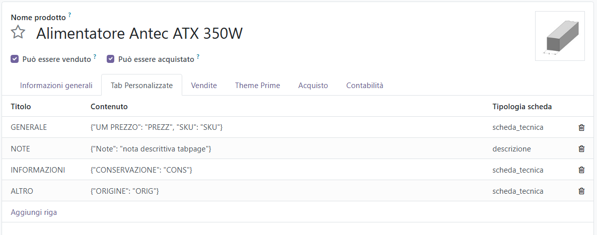 Come configurare i tab di tipologia “Scheda Tecnica”