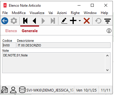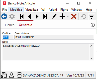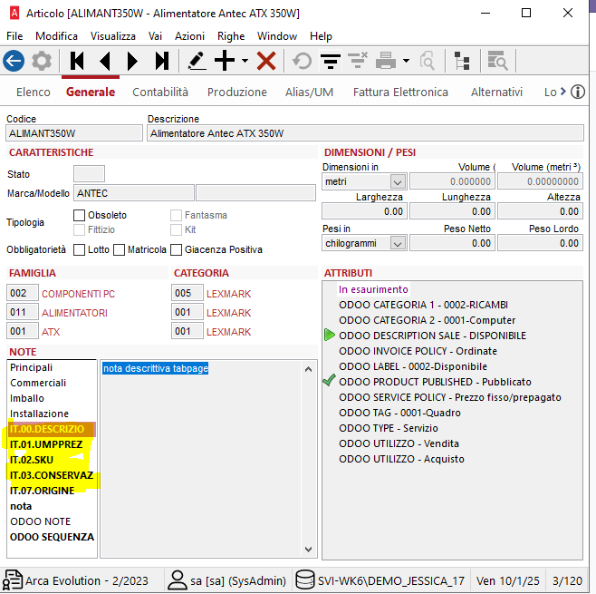 Lato Arca, dovremmo configurare le Note Interne dei prodotti.