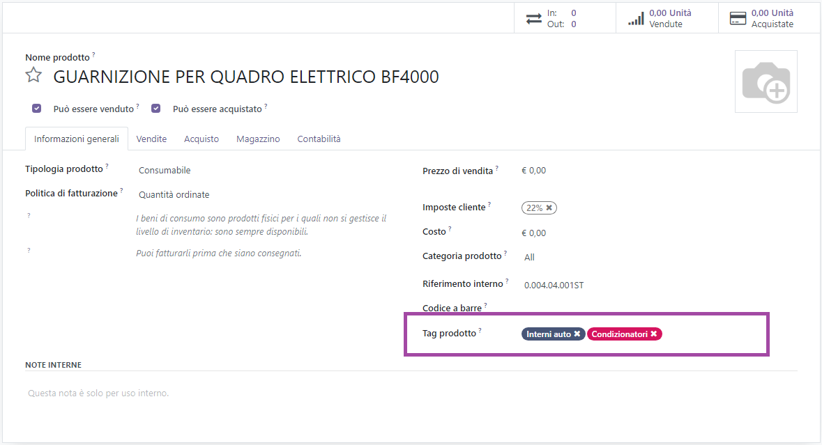 SU ODOO verrà riportata solamente la descrizione.